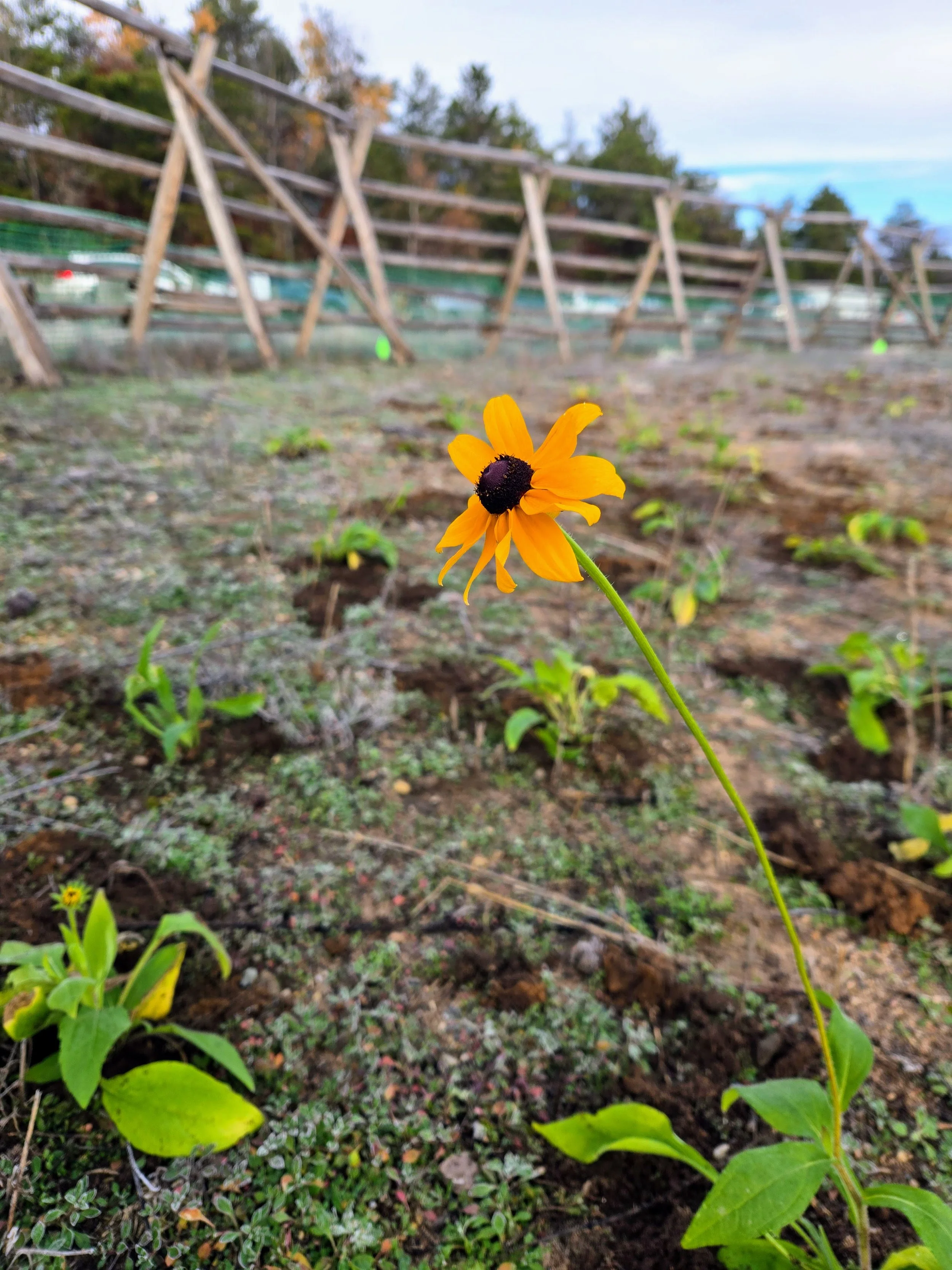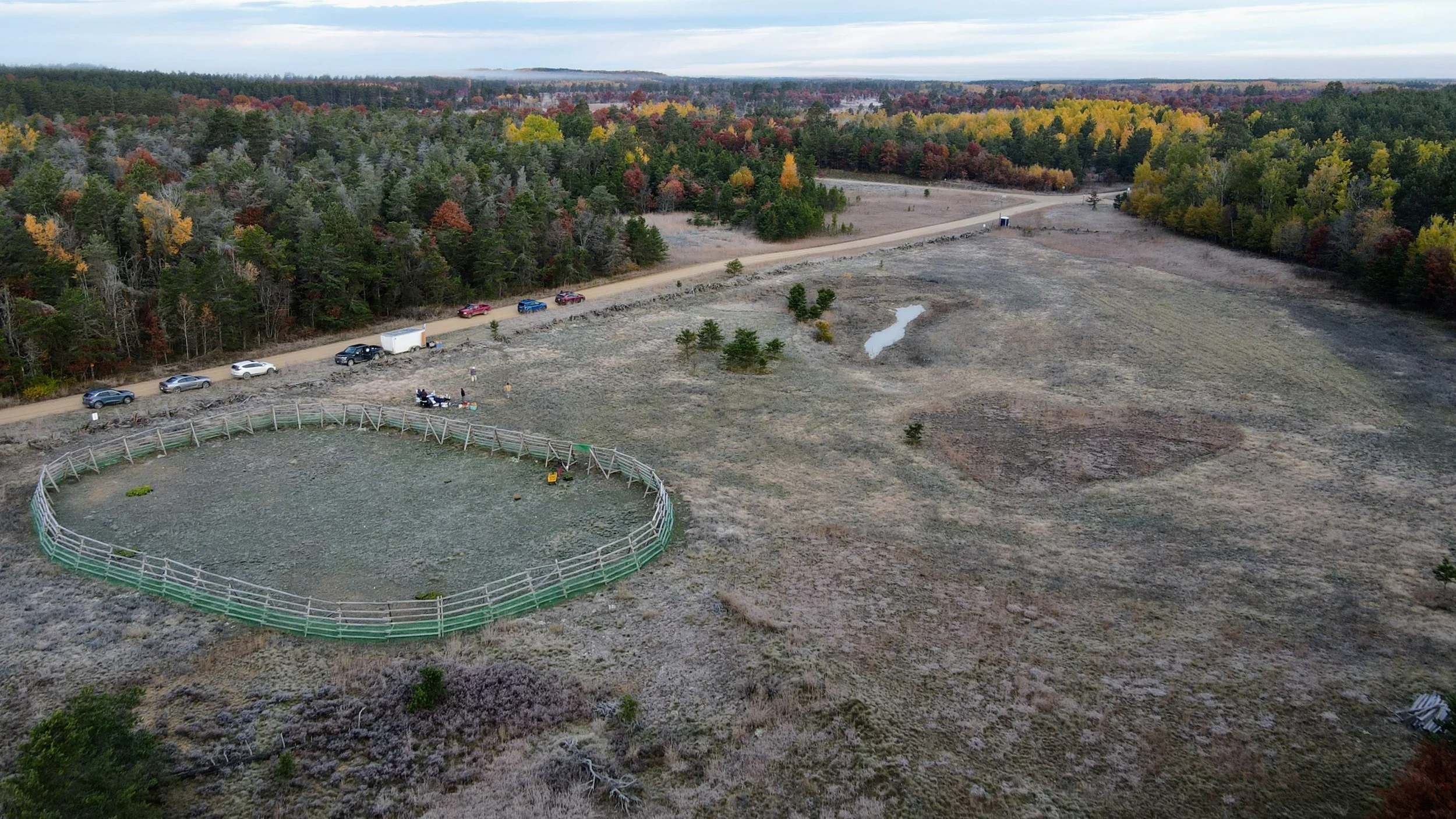 This remote, six-acre site has been established for the propagation of native plants. A buck-and-rail fence encloses a half-acre area to protect it from disturbance while these sensitive plants grow and flourish. In fall 2025, Huron Pines staff and volunteers planted 17 species of native wildflowers and grasses within the fenced area—amounting to 3,200 individual plants—and scattered an additional 44 pounds of native seed across the area to further boost biodiversity. Continued weeding and a watering system will help maintain this site which will provide seed and local genetics for future restoration efforts across the broader region.